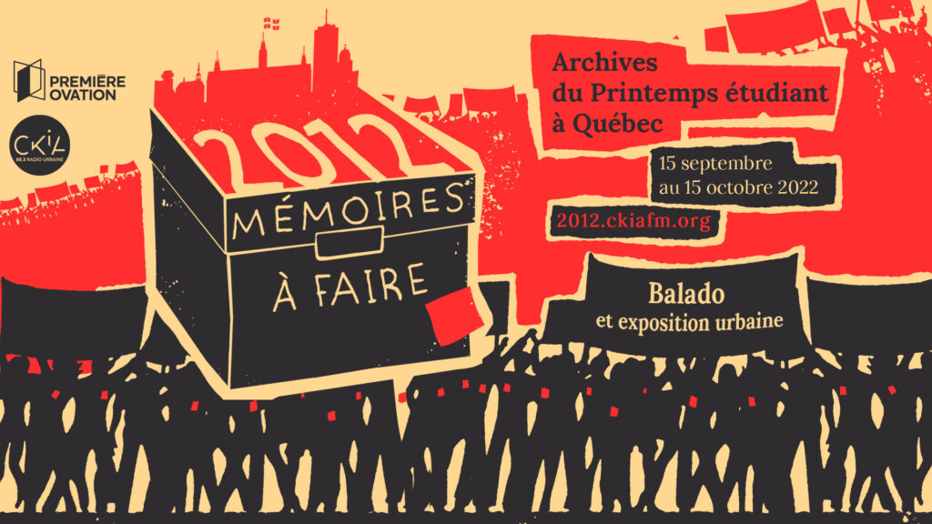 Du 15 septembre au 15 octobre 2022, découvrez les archives et artéfacts retrouvés par les membres du Comité dans les sous-sols, les greniers et les entrepôts d’associations étudiantes. Complémentaire à l’écoute du balado, la visite de l’exposition urbaine vous permettra d’accéder plus profondément à la mémoire des événements du printemps 2012.